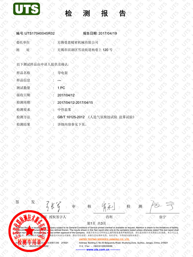 鹽霧試驗(yàn)-導(dǎo)電架